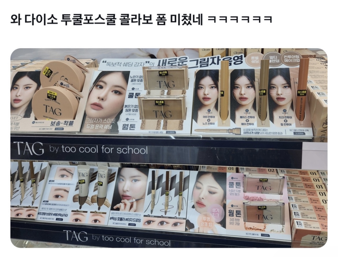 코덕 친구라면 누구나 한 번쯤 사용해본 적 있는 투쿨포스쿨 쉐딩 제품, 지금 다이소에서 만나볼 수 있습니다! 유명 뷰티 브랜드 투쿨포스쿨과 다이소가 협업하여 만든 TAG 브랜드의 듀얼 멀티 세딩은 출시 직후부터 많은 주목을 받고 있습니다.