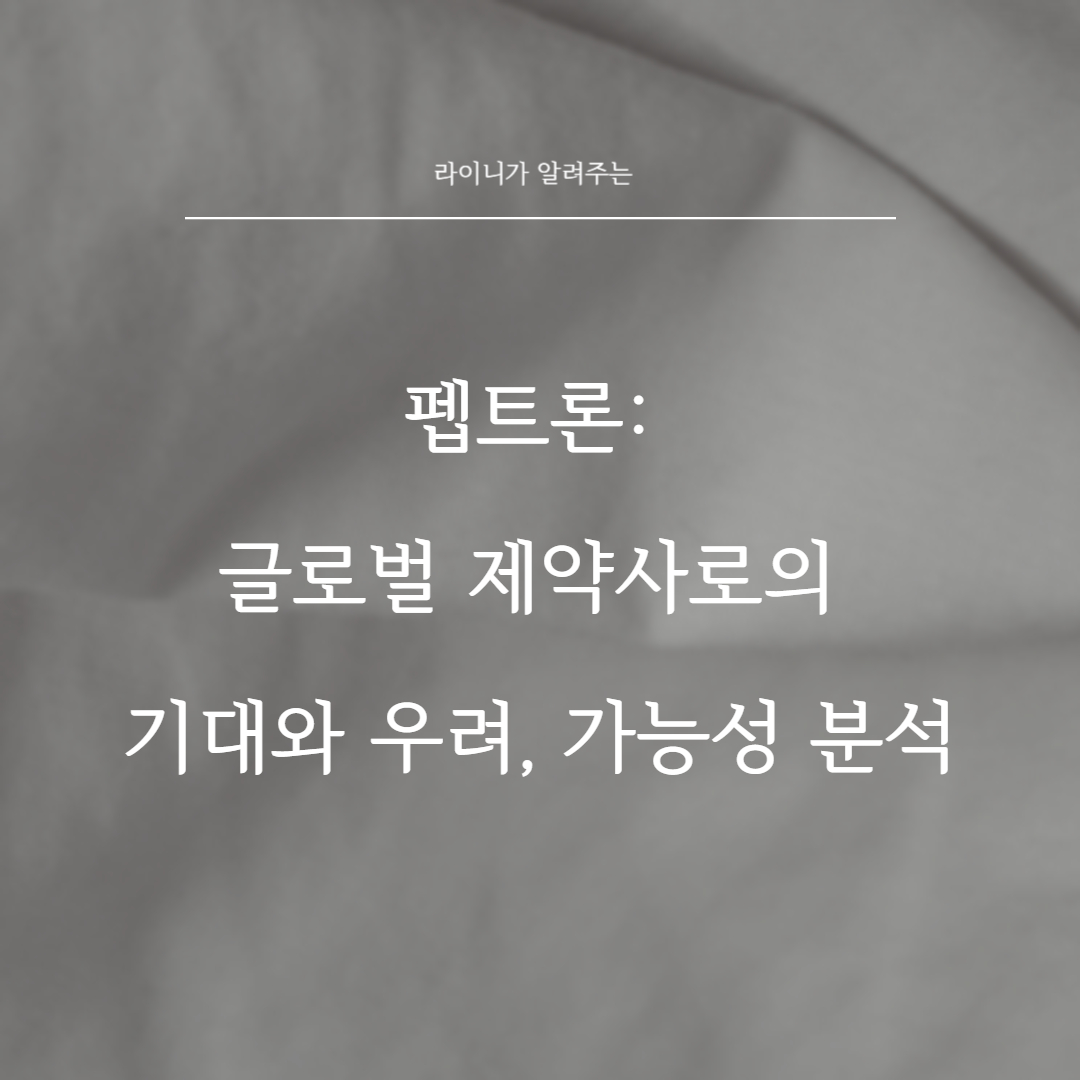이 블로그에서는 펩트론의 성장 가능성, 조심해야 할 점, 개선해야 하는 점, 글로벌 제약사들의 시선, 글로벌 기업으로의 성장 가능성, 대표 등을 다각도로 조명하며 펩트론의 미래 전망을 심층적으로 분석해보겠습니다.