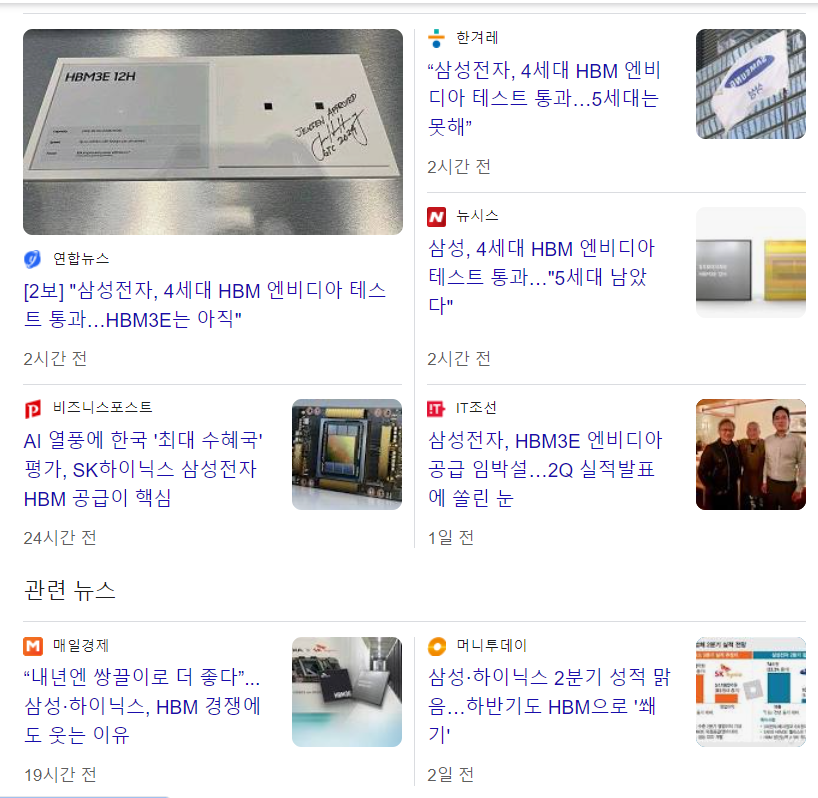 구글에 "삼성 HBM"을 검색해봅니다.